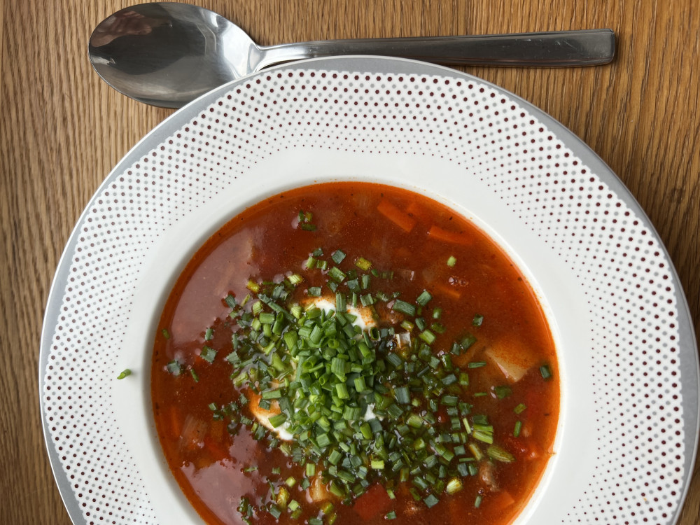 Pasniedzam kā vēlamies - ar krējumu, zaļumiem, čabatas vai citas maizes šķēlīti.